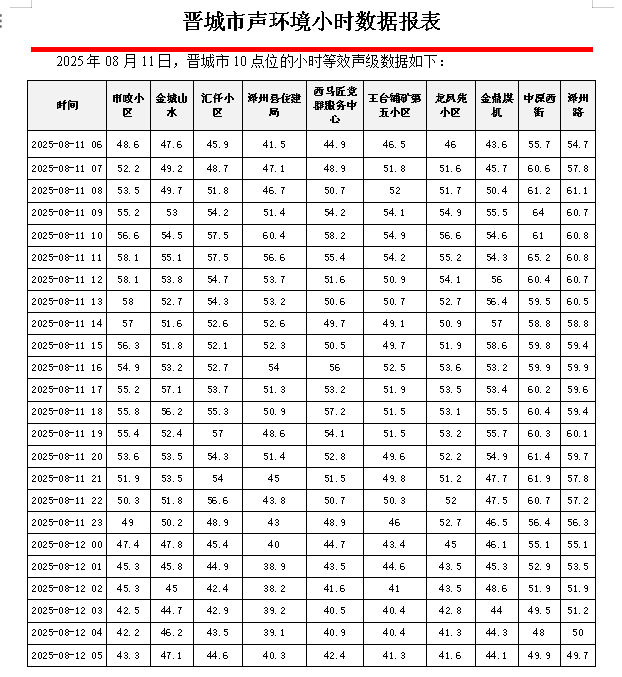 正规博彩平台声环境小时数据报表(2025年08月11日):十大热门博彩平台下载