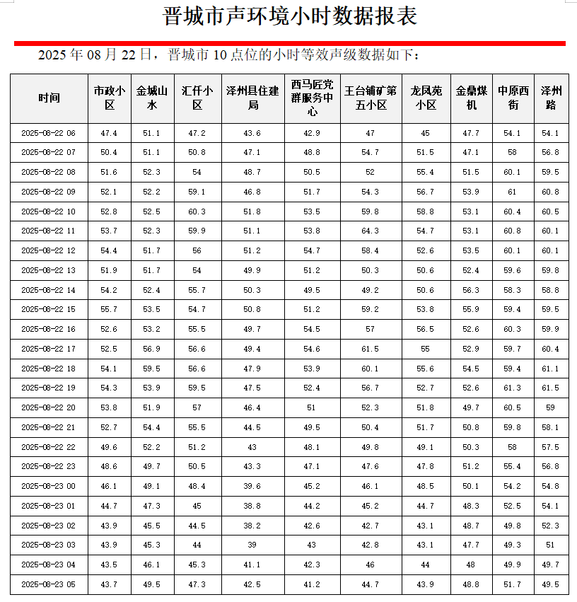 正规博彩平台声环境小时数据报表(2025年08月22日):世界杯赌场盘平台
