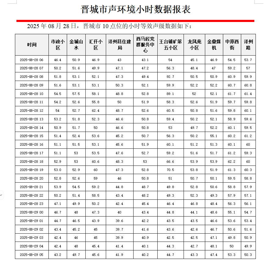 博彩平台声环境小时数据报表(2025年08月28日):ai建站大师