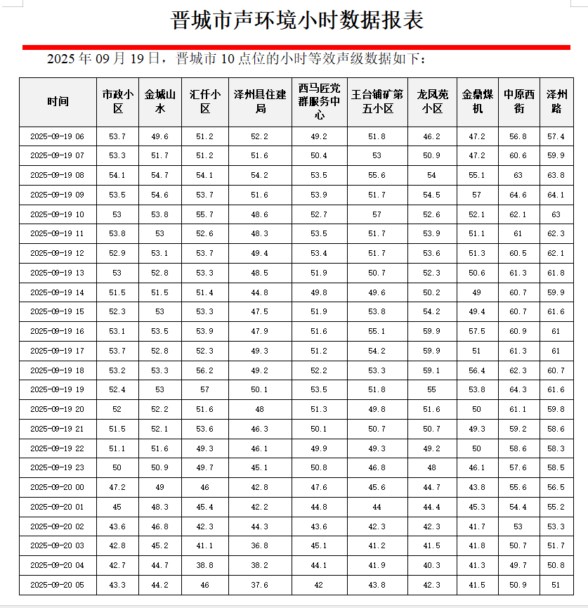 博彩平台声环境小时数据报表(2025年09月20日):ai建站大师