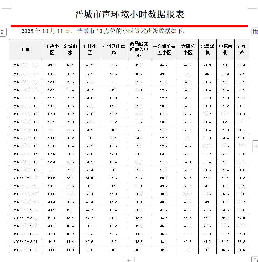 博彩平台声环境小时数据报表(2025年10月12日):世界杯盘口官方下载