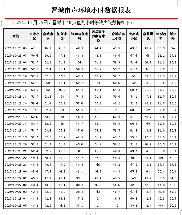 博彩平台声环境小时数据报表(2025年10月27日):买世界杯老品牌