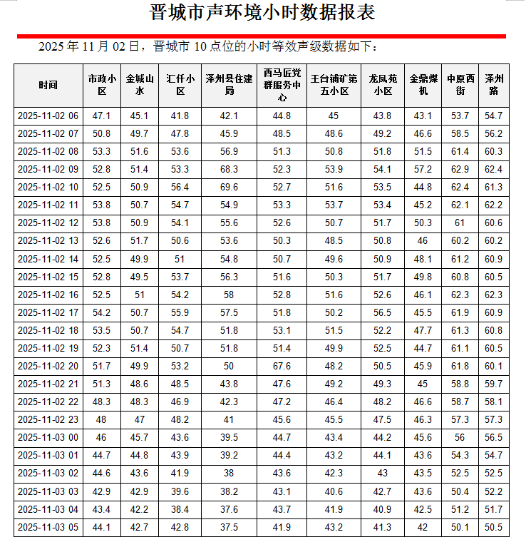 博彩平台声环境小时数据报表(2025年11月03日):世界杯投注网主页