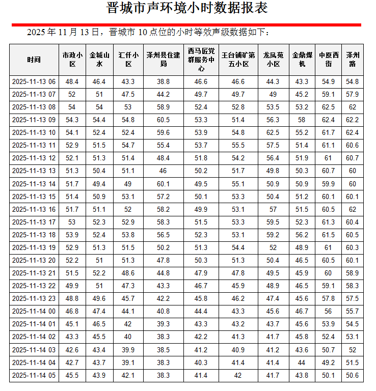 博彩平台声环境小时数据报表(2025年11月14日):澳门十大赌城亚洲