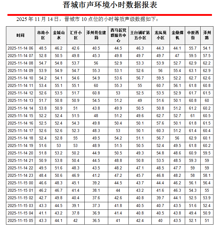 博彩平台声环境小时数据报表(2025年11月15日):十大网赌注册即送
