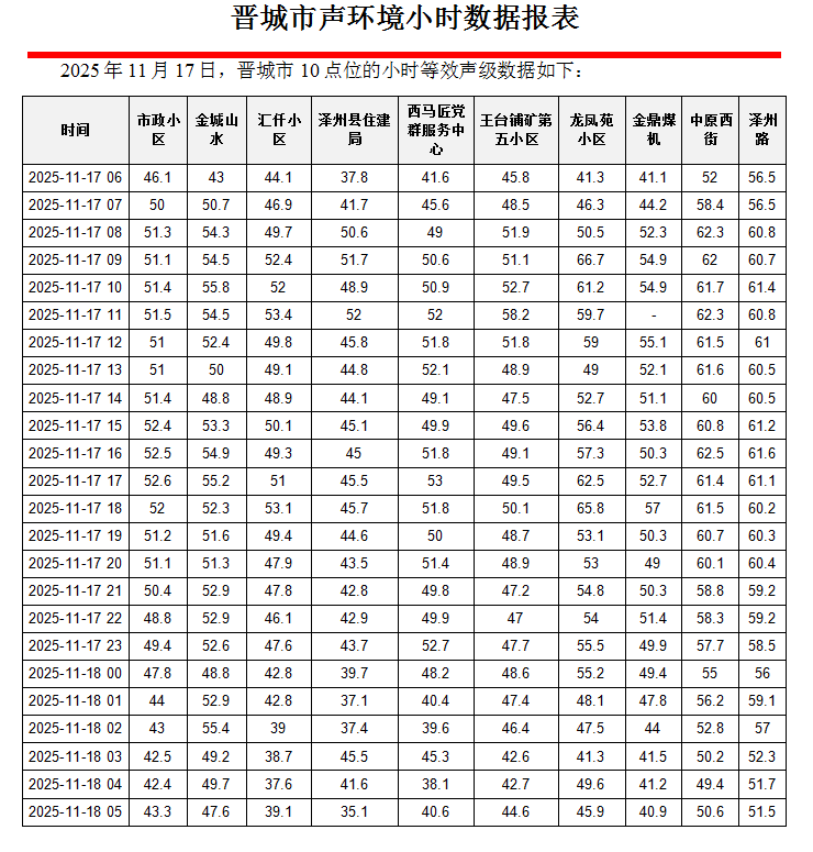 正规博彩平台声环境小时数据报表(2025年11月18日):十大正规赌钱网站官网注册