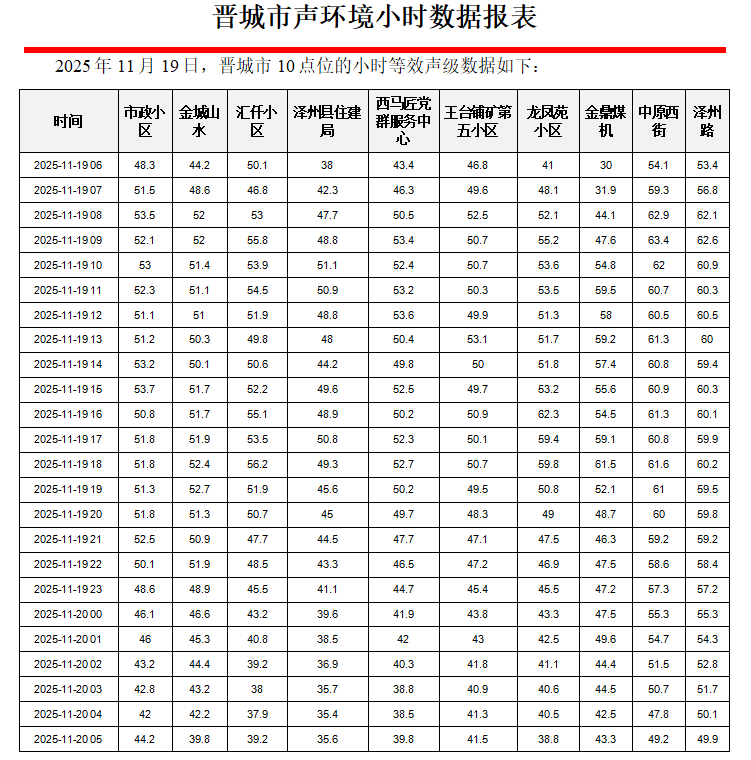 博彩平台声环境小时数据报表(2025年11月20日):十大正规赌伟德国际集团登录