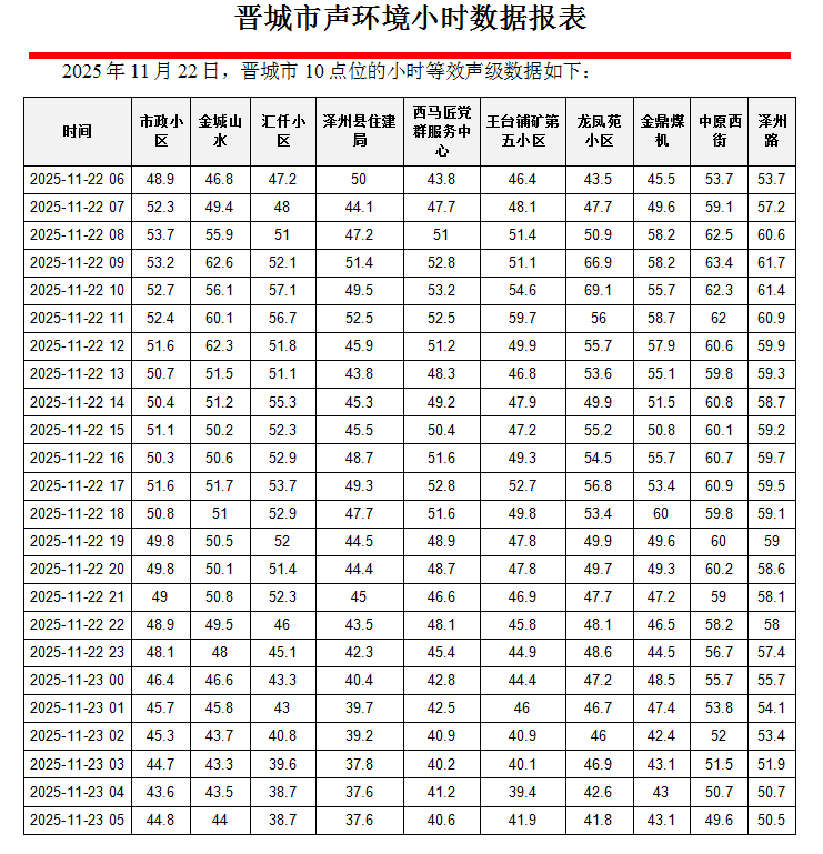 正规博彩平台声环境小时数据报表(2025年11月23日):澳门皇冠赌场注册手机下载