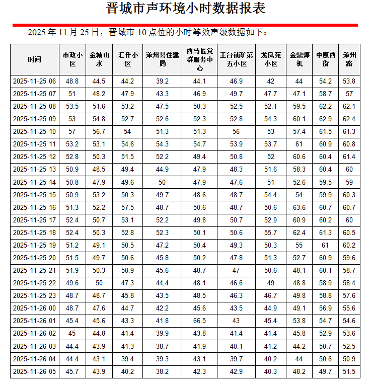 博彩平台声环境小时数据报表(2025年11月26日):十大网赌公平登录