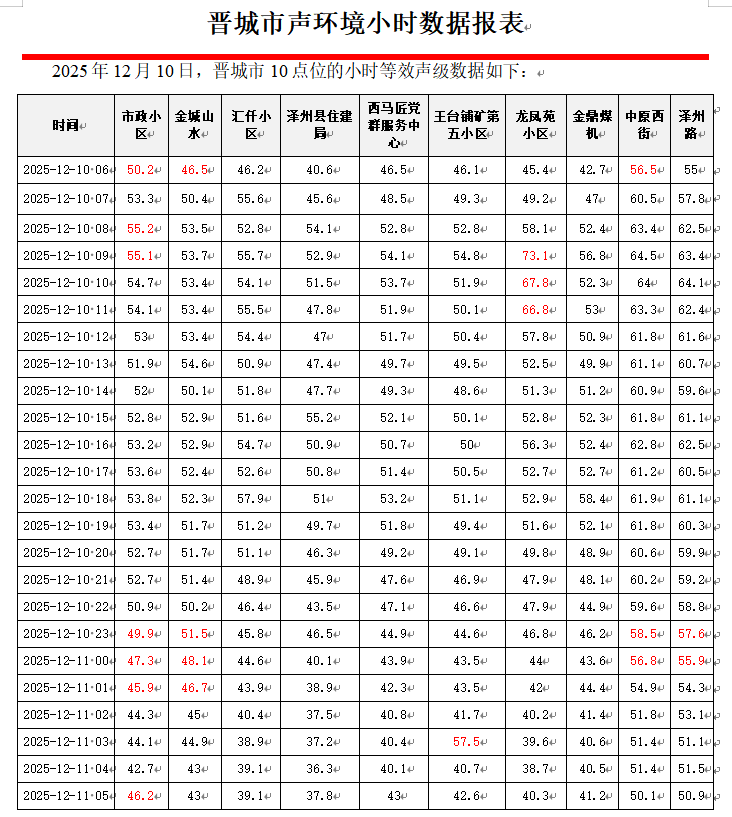 博彩平台声环境小时数据报表(2025年12月11日):世界杯下注首登录官网